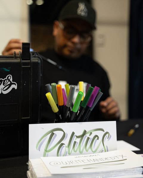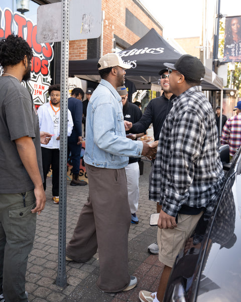 To start the day, we hosted 'Politics & Friends' at our Dallas location from 11 AM to 3 PM. DJ Sober, a legendary Dallas DJ, provided the tunes, and his new local restaurant, 'Herby's Burgers,' served up delicious bites. We also had the local art collective WriteHandedTX drawing custom signs for everyone in attendance. It was a special time filled with great energy, good people, and cool kicks.