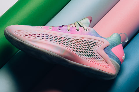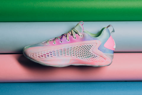 Anthony Edwards’ signature AE 1 Low gets a softer, more playful spin with the ‘3SSB’ colorway. Built for speed with its light, low-cut frame, this version stands out thanks to pastel tie-dye uppers, marbled midsoles, and a Bliss Pink TPU wing that adds just the right amount of flair.