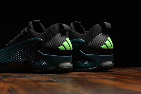 ELEVATING ANTHONY EDWARDS' DEBUT SIGNATURE SHOE, THE AE 1 LOW 'ARCTIC NIGHT' MARRIES A DARK, BREATHABLE MESH UPPER WITH EXPANSIVE TPU WINGS FEATURING A UNIQUE HONEYCOMB TEXTURE AND IRIDESCENT SHEEN. CLEAN GREEN DETAILS PUNCTUATE THE HEEL AND TONGUE, WHILE A LIGHTSTRIKE MIDSOLE WITH LIGHT BOOST DELIVERS EFFORTLESS COMFORT.