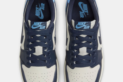 Jordan Brand revisits its archives with the release of the Air Jordan 1 Low OG “Obsidian UNC.” This timeless low-top sneaker features an all-leather construction and showcases a classic combination of navy, university blue, and sail colors, enhancing the versatility of the silhouette.