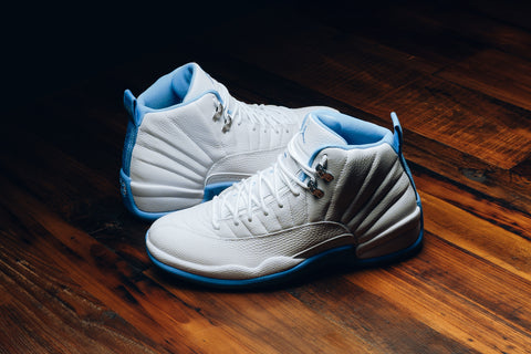 The Air Jordan 12 Retro ‘Melo’ returns in a clean white and university blue colorway, originally worn by Carmelo Anthony during his rookie season in Denver. Built with a full-grain leather upper, metallic silver eyelets, and signature stitched paneling, this classic silhouette pairs sharp contrast with heritage detail.