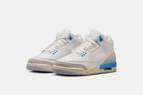 JORDAN BRAND SALUTES MJ’S GOOD-LUCK CHARM WITH THE AIR JORDAN 3 “LUCKY SHORTS.” DRAWING FROM HIS UNC PRACTICE SHORTS, THIS PAIR BLENDS HYDROGEN BLUE AND SAIL, EMBODYING THE RITUAL THAT CONNECTED HIS COLLEGE SUCCESS TO NBA DOMINANCE.