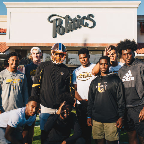 After six successful years of operating solely in Lafayette, we opened our second store right down I-10 in Baton Rouge. Expanding to a new location but remaining close to home made it easy to capture a new audience while continuing to show love to Louisiana without changing up our culture. Being so close to LSU’s campus hasn’t only allowed us to begin connecting to a younger audience, but provides a lot of great activities around the store like walking the campus lakes, eating at amazing restaurants, and being able to attend college sports almost year-round. To celebrate the 20th anniversary of ‘The Waterboy,’ we teamed up with Adidas at our Baton Rouge location to hold a special activation event introducing the limited edition ‘SCLSU and The Waterboy’ capsule collection.