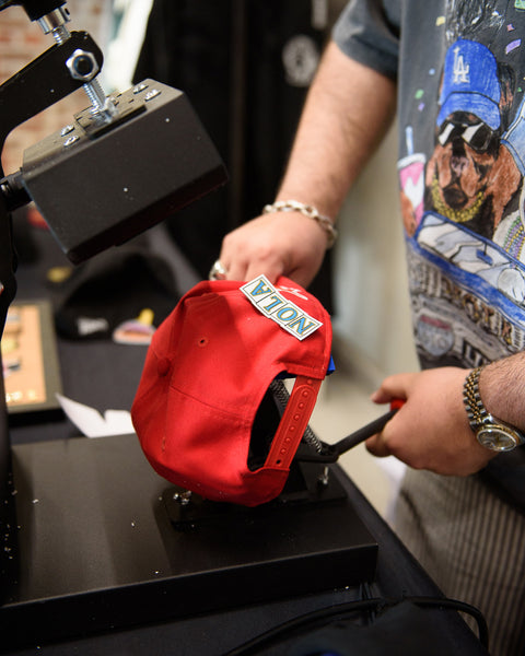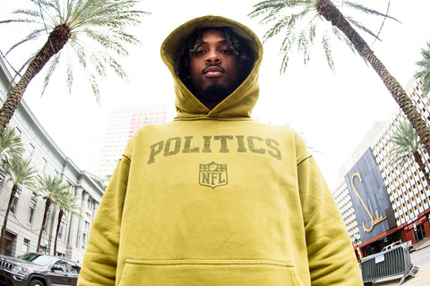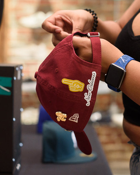 To give our community something special, we partnered with New Era to offer an in-store hat customization experience from February 7th through 9th. Customers were able to purchase any New Era hat in-store and select their favorite New Orleans inspired patches, which were heat-pressed by Politics' very own SaucePanDan—at no extra cost. Additionally, customers who purchased a Politics x NFL fitted hat could enter a memorabilia sweepstakes, with a chance to pull a matching player card attached to signed headwear from NFL stars like Josh Allen and Micah Parsons.