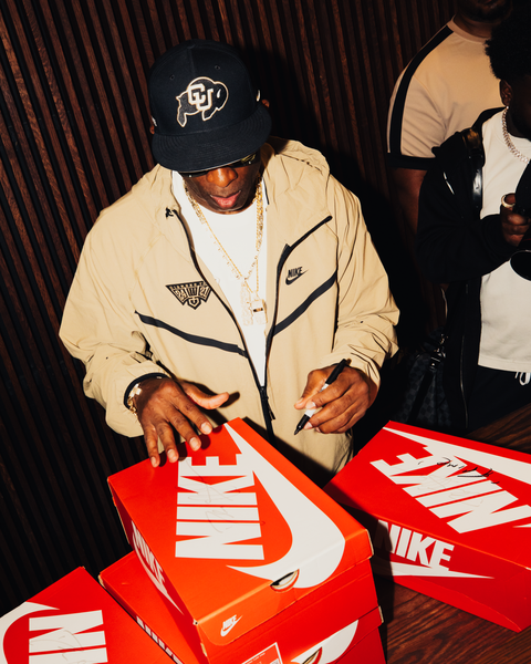 Nike has brought back a legend with the Air Diamond Turf “Signing Day,” inspired by Deion Sanders’ iconic 1989 NFL Draft look. We had the opportunity to release this sneaker early for Super Bowl Weekend, and Deion himself stopped by our New Orleans store for the special release. After grabbing his limited-edition Varsity Jacket, designed by Politics and Nike, he signed a few pairs for lucky fans and even filmed an episode of Sneaker Shopping with Complex.