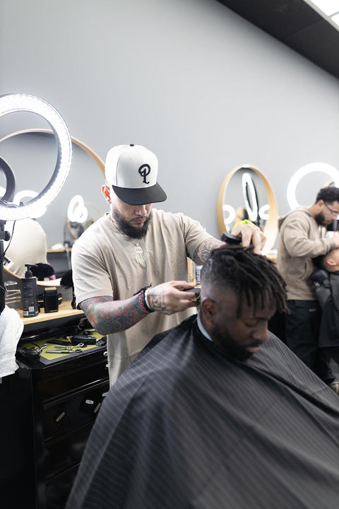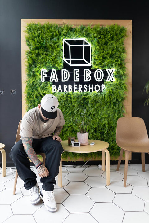 Meet Eric “E Fades” Alderete, founder of Fadebox, a modern-style barber shop that goes beyond cutting hair and has become more of a brand and lifestyle for its loyal patrons. Growing up in the small town of Taylor, TX, E realized that there weren’t many talented local barbers and decided to take cutting hair into his own hands as a hobby. E’s friends let him practice and learn on them and he eventually became skilled enough that more students began signing up as clients, making E’s pastime more like a part-time. E got his first real opportunity as a professional barber in Austin, where he spent three years building a large enough client base to start his shop. With hard work, savvy business partners, and a wizard with the scissors leading the charge, Fadebox was born.