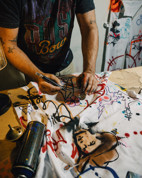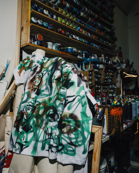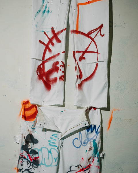 Introducing Michael Shellis, a Dallas-based contemporary artist known for his bold fusion of pop art and street culture. Now, Shellis is teaming up with Sneaker Politics and Dickies to bring his unique style to wearable art. Join us this Friday, Decmber 13th in Dallas, TX at Michael Shellis’ studio to witness a live-painting experience where Shellis will hand paint and embellish Dickies double-knee pants and shirts, transforming iconic workwear into one-of-a-kind pieces of art. Attendees will be able to enjoy sounds from DJ Honey and Aniyah Henry, hang with other art enthusiasts, and have the chance to purchase 1-of-1 wearable-art by Michael Shellis. Politics Custom Painted Dickies by Michael Shellis.