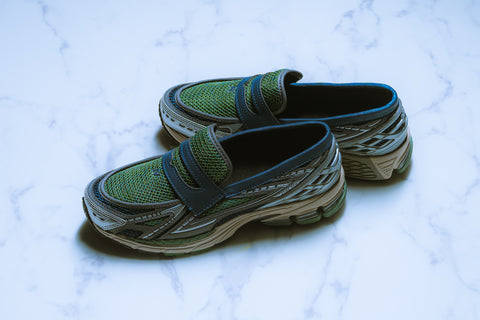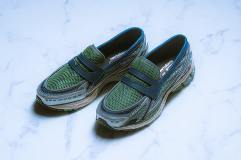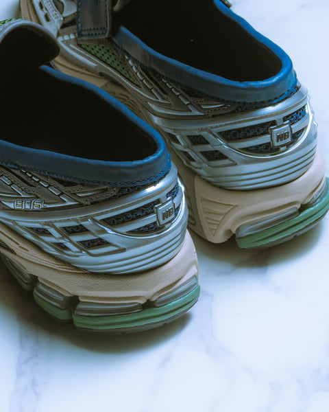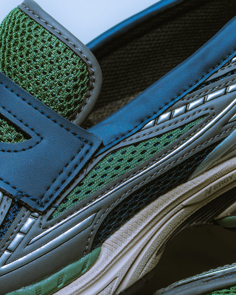NEW BALANCE EXPANDS ON THE SUCCESS OF THE 1906 WITH THE 1906L IN A DARK JUNIPER AND NAVY COLORWAY, FEATURING SILVER METALLIC ACCENTS AND AN AGED MIDSOLE FOR A VINTAGE LOOK. THE SHOE INCORPORATES A CUSHIONED 860V2 SOLE WITH SHOCK-ABSORBING PODS, A BREATHABLE OPEN-HOLED UPPER, AND SIGNATURE CURVILINEAR OVERLAYS, OFFERING A MODERN TWIST ON THE CLASSIC SILHOUETTE.