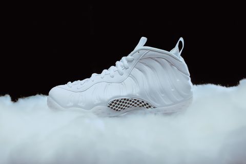 Keep it clean with the Nike Air Foamposite One 'Triple White', a sleek all-white Foamposite featuring leather accents and bold, black '1 Cent' logos to contrast. Underneath, it's packed with Zoom Air cushioning and a carbon fiber shank plate that brings lightweight support and style.
