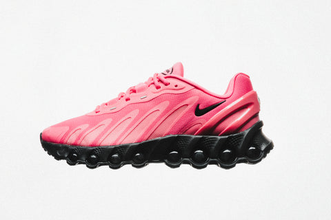 NIKE TAKES AIR TO THE NEXT LEVEL WITH THE ALL-NEW AIR MAX DN8. FEATURING FULL-LENGTH DYNAMIC AIR TECHNOLOGY WITH EIGHT PRESSURIZED CHAMBERS, THIS FUTURISTIC DESIGN DELIVERS UNMATCHED BOUNCE AND FLEXIBILITY WITH A STATEMENT-MAKING HYPER PINK COLORWAY TO INTRODUCE THE SILHOUETTE.