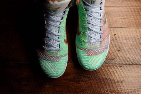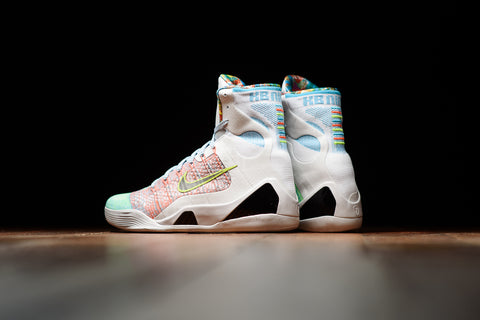 The Nike Kobe IX Elite High Protro ‘What The’ blends key moments from the Kobe 9 series into one bold design. Featuring mismatched Flyknit, reflective details, and upgraded Protro tech, it’s a tribute to the legacy of the Mamba—loud, fearless, and unforgettable.