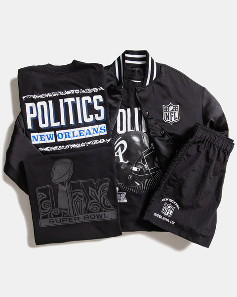 The Politics x NFL Origins Collection will only be available at our New Orleans locations this Thursday, 2/6. Registration is needed for in-store purchase. The collection will be available online 2/7 at 9 AM CT.