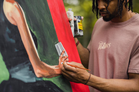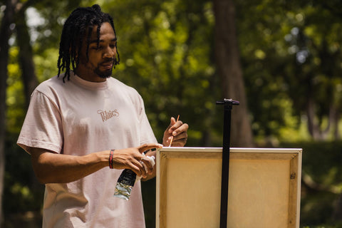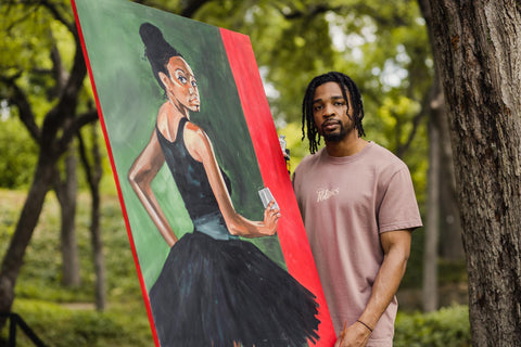 Ra is an artist, creative, and designer based out of Dallas, TX. His introduction to the art world was through his parent’s books that contained works by Basquiat, Frida Kahlo, and Earnie Barnes. Though he was influenced by art at a young age, his journey as an artist began during his recovery from several serious surgeries from injuries while playing football for SMU. During his recovery, Ra experimented with painting. His preferred mediums are acrylics, charcoals, and ink. It’s through the latter of the two he enjoys the freedom they allow, while the acrylic gives him the ability to stack colors and block out shapes. His style can be described as impressionistic and figurative while also being culturally relevant. He’s created commissioned works for NFL and college athletes. Though Ra’s works have not been limited to just painting, he has also designed clothing for SMU athletics and worked with multiple creative firms throughout Dallas.