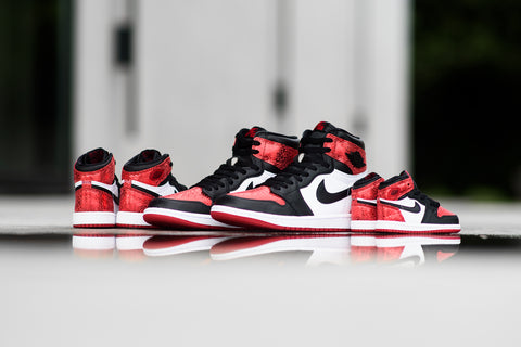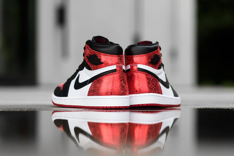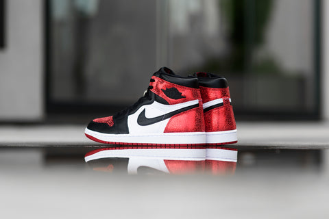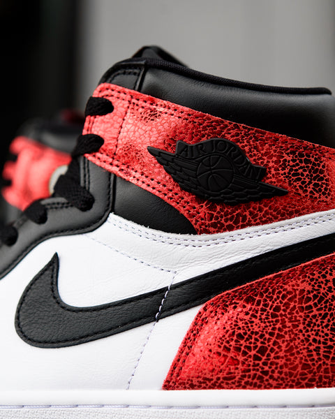 The Women’s Air Jordan 1 Retro High OG ‘Ruby’ brings a bold twist to the iconic silhouette with a cracked metallic red finish that nods to the gemstone’s natural texture. Classic white and black leather paneling grounds the design, while a white midsole and varsity red outsole adds a touch of shine to a timeless favorite.