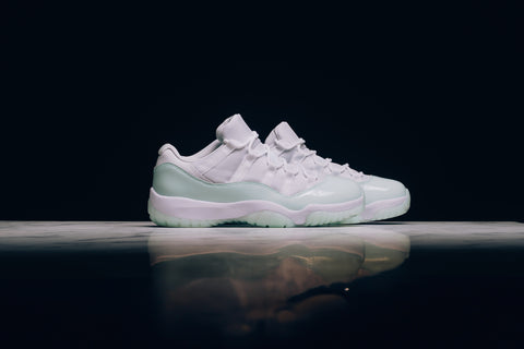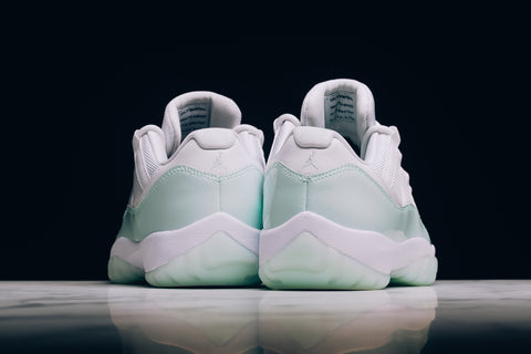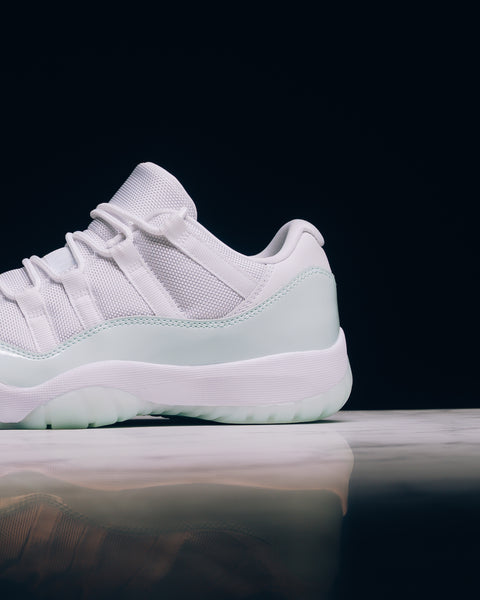 The Women’s Air Jordan 11 Retro Low ‘Igloo’ refreshes a timeless silhouette with a crisp white mesh upper and glossy mint green patent leather. Signature details like the translucent outsole and embroidered Jumpman on the heel stay true to the AJ11 legacy while bringing an icy new energy for summer.