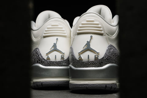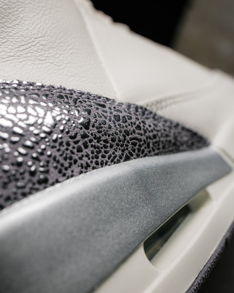 Jordan Brand keeps the Air Jordan 3 in rotation with the women’s exclusive “Metallic Silver.” The shoe swaps the standard matte elephant print for a glossy one print, while Metallic Silver accents on the midsole and heel add a fashion-forward take on the classic silhouette.