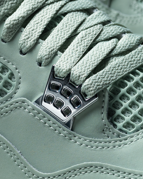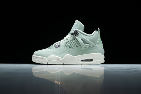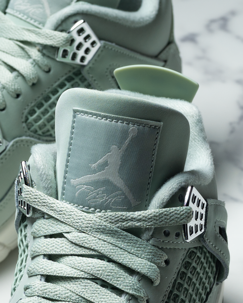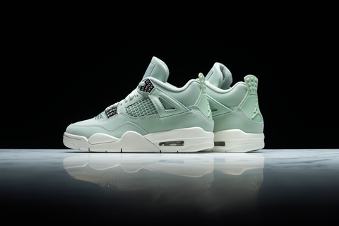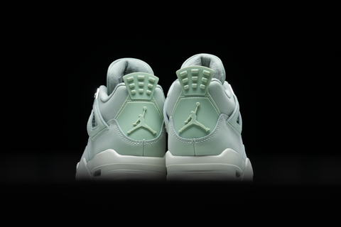 JORDAN BRAND REFRESHES THE AIR JORDAN 4 FOR SPRING WITH THE JORDAN 4 RETRO ‘SEAFOAM SAIL.’ DRESSED IN A SOFT PALE GREEN, THE SMOOTH LEATHER UPPER IS COMPLEMENTED BY BREATHABLE QUARTER PANEL NETTING AND TONAL JUMPMAN BRANDING. METALLIC SILVER EYELETS ADD A SLEEK CONTRAST, WHILE AN OFF-WHITE POLYURETHANE MIDSOLE WITH A VISIBLE AIR-SOLE UNIT ENSURES CLASSIC COMFORT AND STYLE.