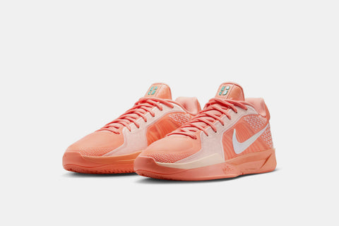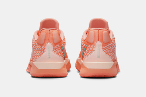 The Sabrina 2 “Apricot Agate” keeps the momentum going with a pastel-inspired look fit for the season. A breathable peach mesh upper sets the tone, while iridescent Swoosh details and Mystic Teal branding add dynamic contrast. Built for speed, control, and all-game comfort.